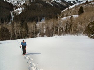 I made the best of the week and got in some good outdoor activities in the snow. I cross country skied several days, hiked, ran and Granny and I worked every muscle in our bodies to the breaking point on Saturday when we summited a no-name mountain on the outskirts of Teton Valley. We hiked over about 8 feet of melting snow on snow shoes. You could say it was steep and deep and the pics tell the story. We’ll be feeling that workout for a week!